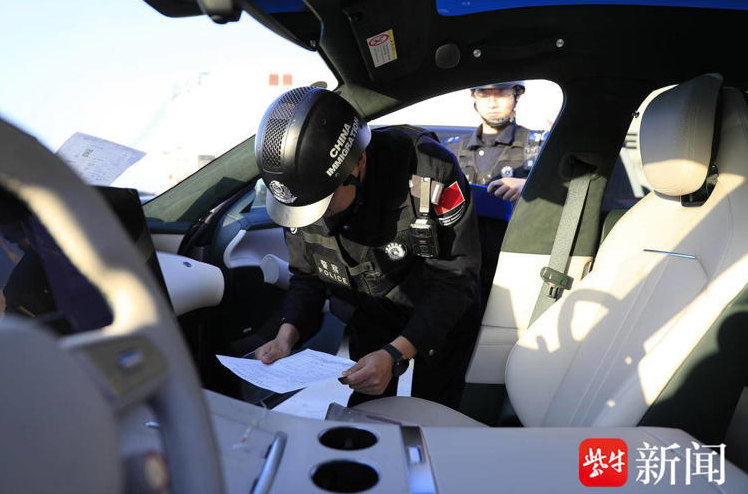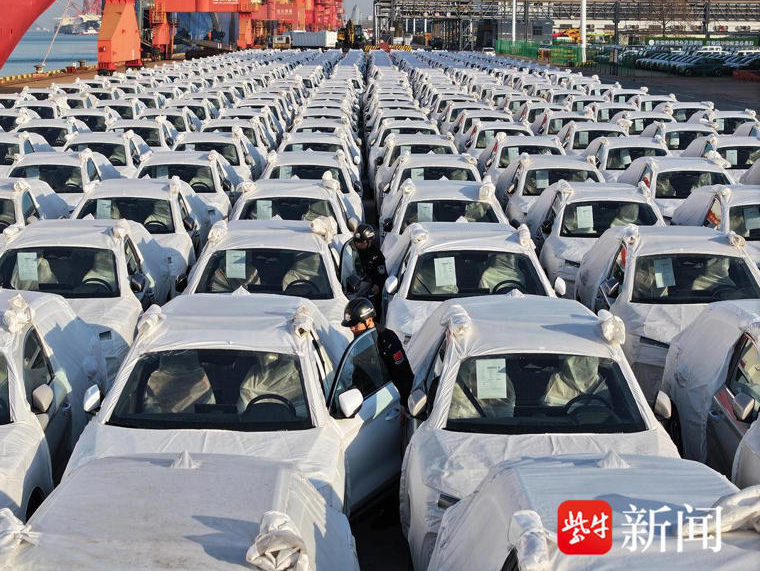 At Berth 68 of Lianyungang Port, rows of brand-new NEVs stand neatly, as border police officers conduct meticulous inspections ahead of shipment.